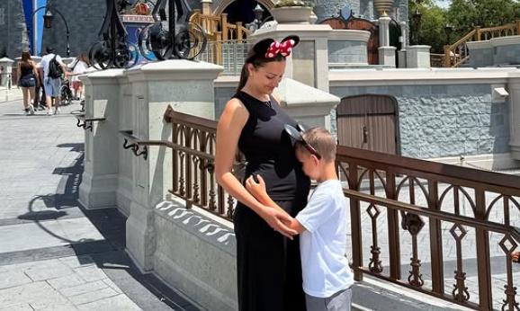 Pjevačica trenutno boravi u Miamiju sa suprugom i sinom Aleksandrom, gdje su posjetili Diznilend. Na objavljenim slikama, Aleksandra u dugoj crnoj haljini blista u poodmakloj trudnoći, dok joj sin nježno ljubi stomak.