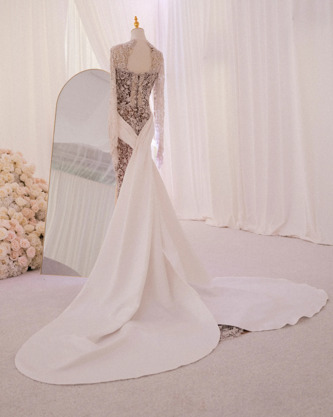 Haljina, bogato ukrašena, pratila je temu vjenčanja – sofisticirano, ali s jasnim korijenima u nigerijskoj kulturi. Svaki stajling pažljivo je osmislila stilistica Tosin Agboola, uz Chiominu želju da poveže modne utjecaje iz Nigerije i međunarodne modne scene.