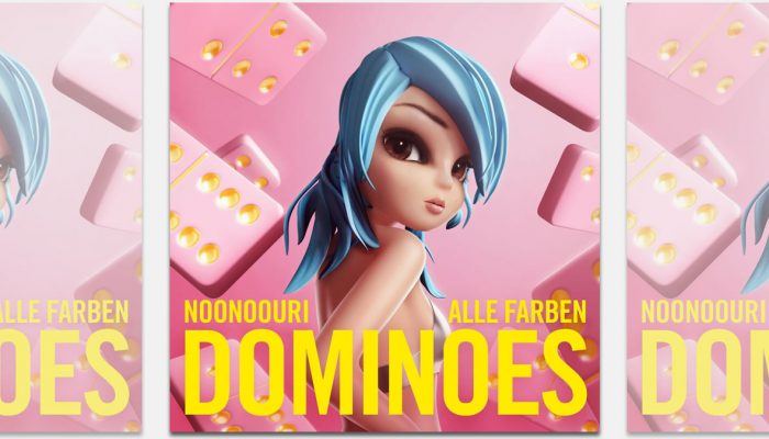 Na debitantskom singlu “Dominoes”, Noonoouri se pridružuje popularni Alle Farben, DJ i producent koji broji gotovo 6 miliona mjesečnih slušatelja na Spotifyju te stoji iza velikih hitova poput “Music Sounds Better With You”, “Good Morning” i “Supergirl” od kojih neki prelaze i 100 miliona Spotify streamova.