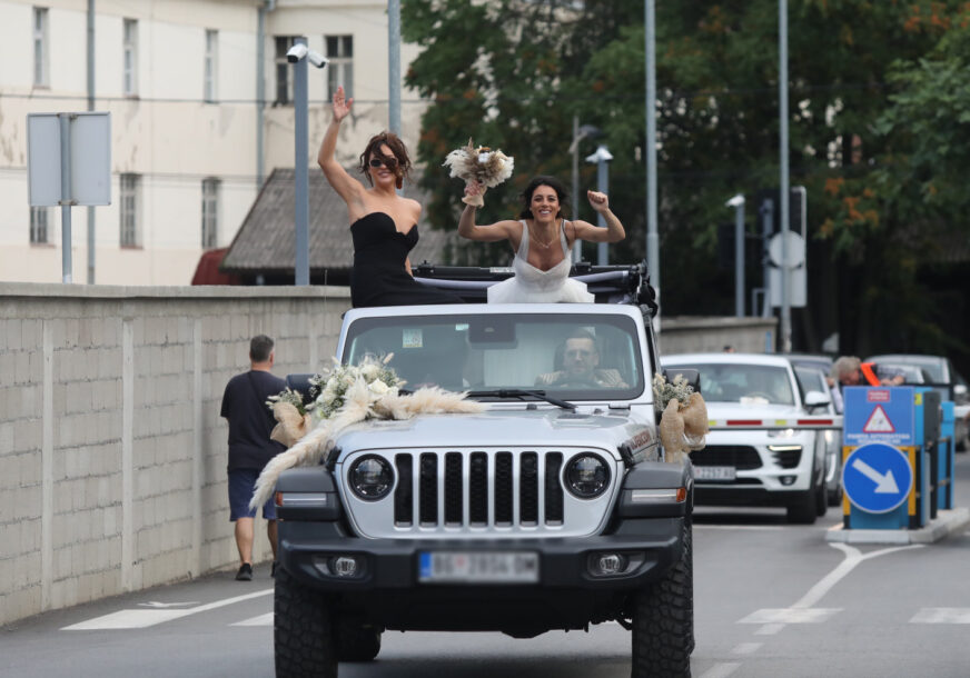 Mladenci, okruženi porodicom i prijateljima, proslavili su ovaj važan dan, a mlada je svoj dolazak u restoran proslavila izlaskom na krov od automobila.