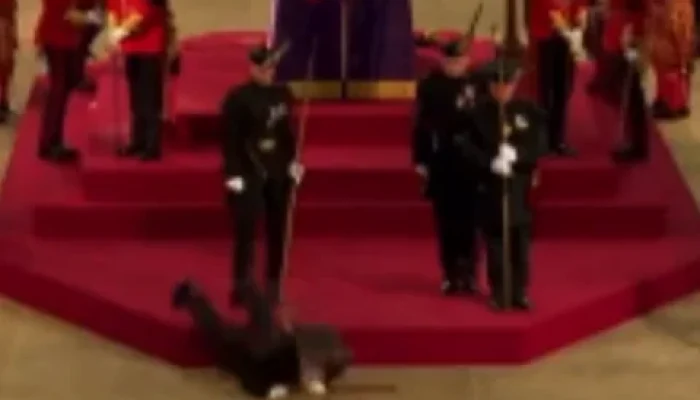 Na snimci koja je postala viralna na internetu vidi se kako se stražar onesvijestio od iznemoglosti u ranim jutarnjim satima. Činilo se da se muškarac spotaknuo prije nego što se srušio s pozornice, a nekoliko policajaca je potrčalo pomoći mu. Ostali stražari na dužnosti izgledali su kao da nisu uznemireni incidentom te se nisu ni pomaknuli.