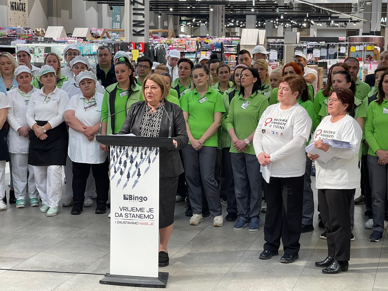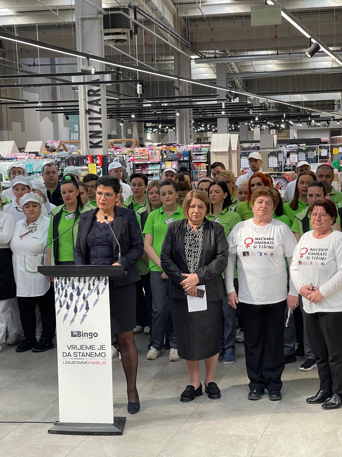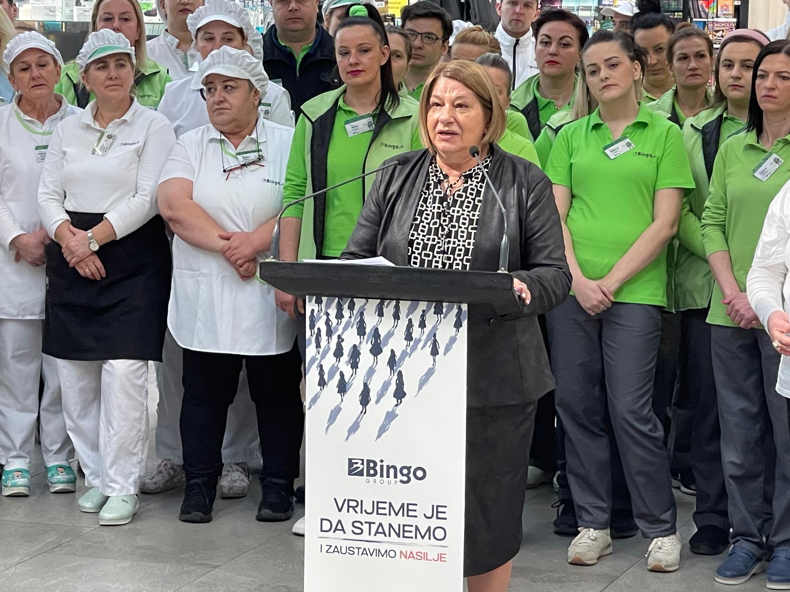 „Danas su stale sa radom sve Bingo trgovine – njih više od 230 – u cijeloj Bosni i Hercegovini. Stale su Dita, Pivara Tuzla, Ingram, Kaletex, Duka, naša fabrika tjestenine, fabrika papira, stala je i Bingo Farma – sve naše fabrike, farme i proizvodne kompanije koje posluju u okviru Bingo grupacije. Jer vrijeme je da stanemo i zaustavimo nasilje nad ženama.“ kazala je izvršna direktorica Binga Ljiljana Kunosić.